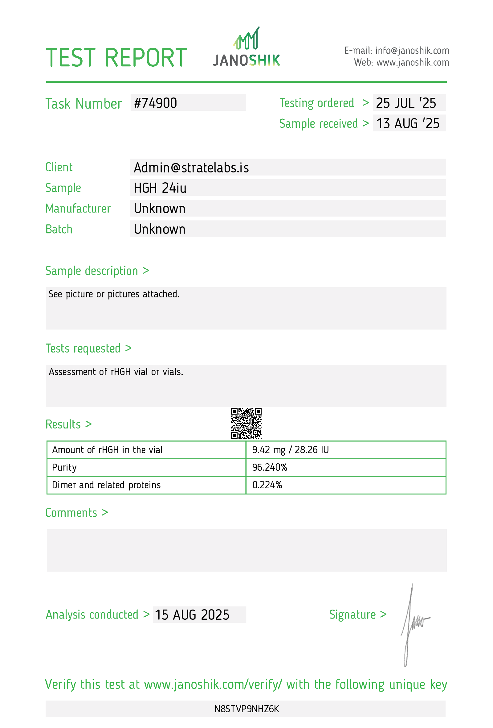 Janoshik Lab Results